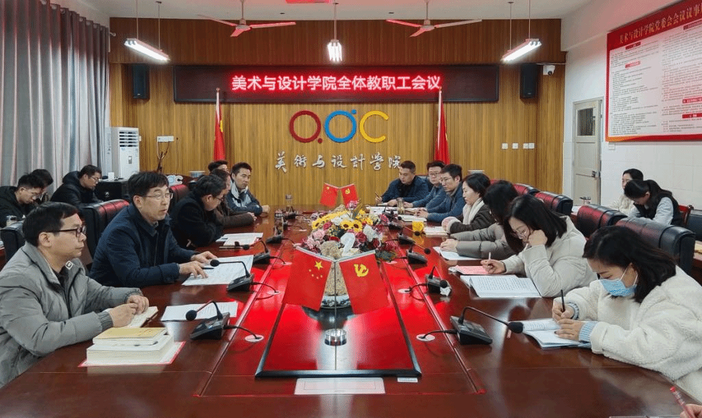 2023年11月29日下午,美术与设计学院召开应用型高水平大学建设工作推进会,会议由学院党委书记陈述立主持,学院党委副书记、院长许兴海,党委副书记、纪委书记边洪强及全体教职工参加会议。