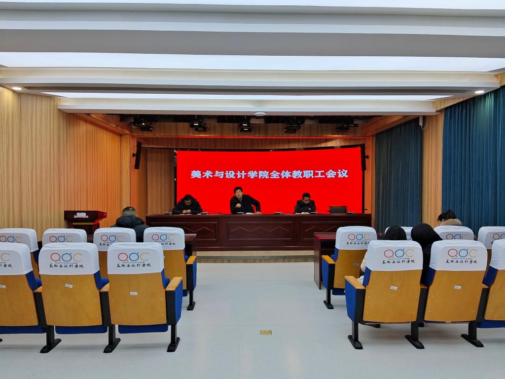 2024 年1月3日下午,美术与设计学院在三楼报告厅召开全体教职工会议,会议由学院党委书记陈述立主持,党委副书记、院长许兴海,党委副书记、纪委书记边洪强及全体教职工参加会议。