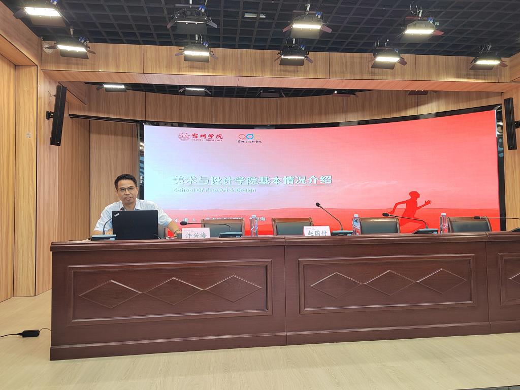座谈会伊始,参会家长观看了学院宣传片。随后,赵国付代表学院向新生家长表示欢迎和问候,他从宿州的历史、人文、美食、景观等四方面介绍了宿州市,又从宿州学院的发展历史与办学特色介绍学校情况。许兴海介绍了美术与设计学院专业建设、师资队伍、培养方案和校企合作、学科竞赛等情况。最后,家长和新生就关心问题进行了深入的沟通与交流。