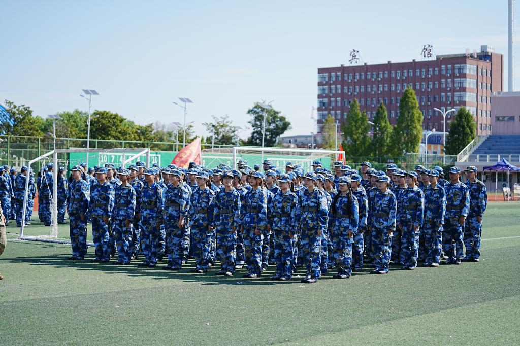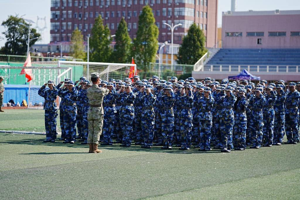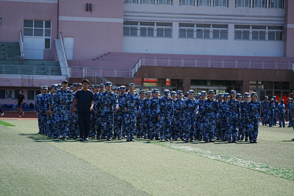 成功需汗水浇灌,精钢须千锤百炼。从紧张无措到标准站立,从不够协调到整齐划一,同学们挑战过多少次自我,只有汗湿的衣衫知道。相信在未来,经过军训洗礼的同学定能不惧艰难险阻,学会在挑战中发掘潜能,用青春之我书写时代华章。