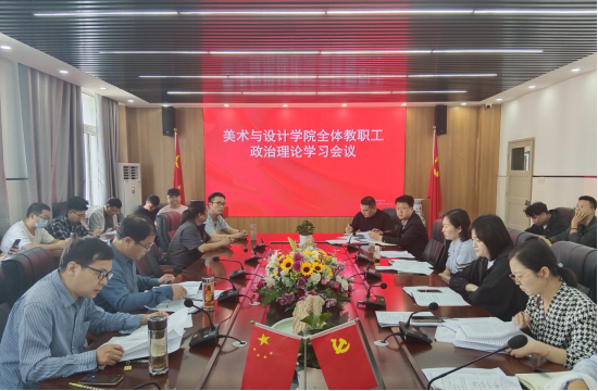 9月25日,美术与设计学院在艺术楼会议室召开党员暨教职工政治理论学习会议,会议由院党委书记赵国付主持,全体党员和教职工参加会议。