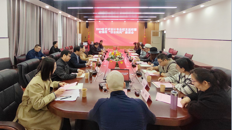 2024 年 10 月 24 日,天高云淡,秋阳普照,美术与设计学院举办2003级艺术设计专业校友返校暨“访企拓岗”座谈会,汇聚校友力量,拓展就业渠道,促进学院高质量发展。校党委常委、副校长王红艳出席会议,美术与设计学院班子成员、2003级艺术设计专业校友代表、教师代表和北京壹默空间建筑工程设计有限公司等6家企业参会。美术与设计学院党委书记赵国付主持会议。
