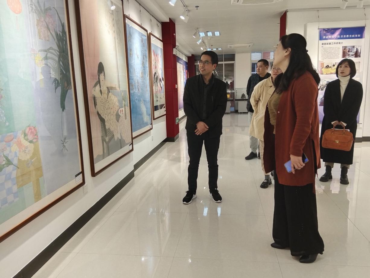 淮南师范学院美术与设计学院党委书记王怀顺、院长倪龙娇对我院一行到校交流表示欢迎,院长倪龙娇简要介绍了学院的基本情况及新一轮本科教育教学审核评估工作总体情况。从“审核评估启动准备、自评自建、自评报告及支撑材料准备、线上评估、专家入校考察”五个阶段详细说明了各个阶段的评建内容和工作重点,从二级学院的角度分享了自评报告撰写、支撑材料准备及评估专家接待等方面的经验和做法。会后,双方就学科专业建设、实验室建设以及审核评估过程中的相关议题进行了深入的交流与探讨,并共同参观了学院的展厅和实验室。