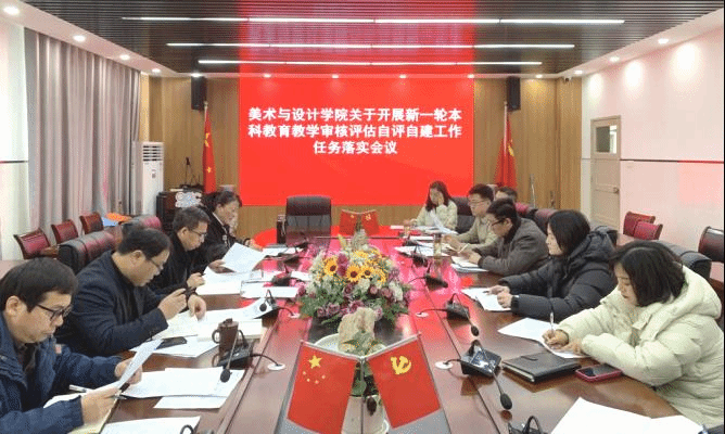 为扎实推进新一轮本科教育教学审核评估工作,2024年11月29日下午,美术与设计学院召开本科教育教学新一轮审核评估自评自建工作推进会。会议由美术与设计学院院长许兴海主持,党委书记赵国付、党委副书记边洪强、副院长李娟、本科教育教学审核评估领导小组成员及各职能部门负责人参加会议。