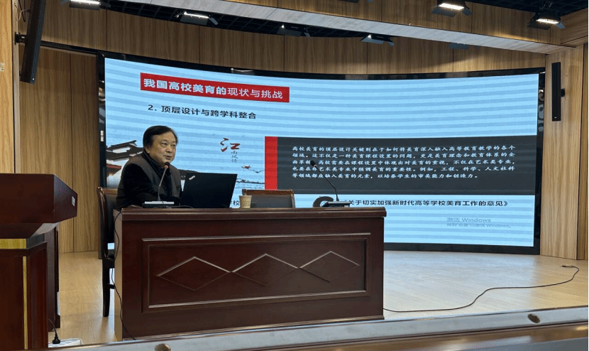 翟勇教授强调,美育不应仅仅局限于艺术课堂,而应渗透到高校教育的各个环节,通过跨学科融合、校园文化活动、社会实践等多种形式,营造浓厚的艺术氛围,激发学生的审美兴趣和创造力。他还就如何有效利用校内外资源,加强美育师资队伍建设,提升美育教学质量等问题,给出了具体建议。讲座结束后,与会师生纷纷表示受益匪浅。