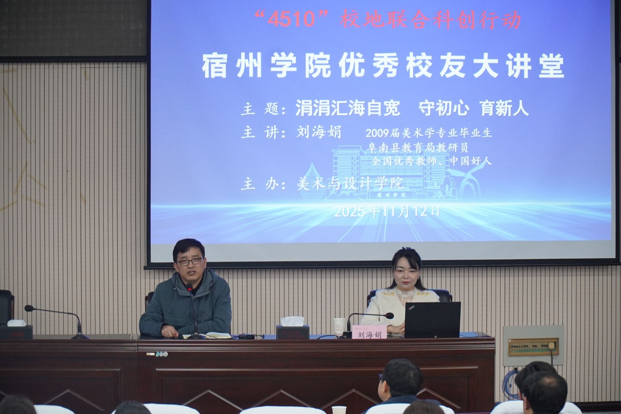 2025年11月12日,为发挥优秀校友的榜样作用,帮助学生明确学习目标和职业规划,激发学习积极性,美术与设计学院邀请该院2009届美术学专业优秀毕业生刘海娟返校开展“校友大讲堂”。