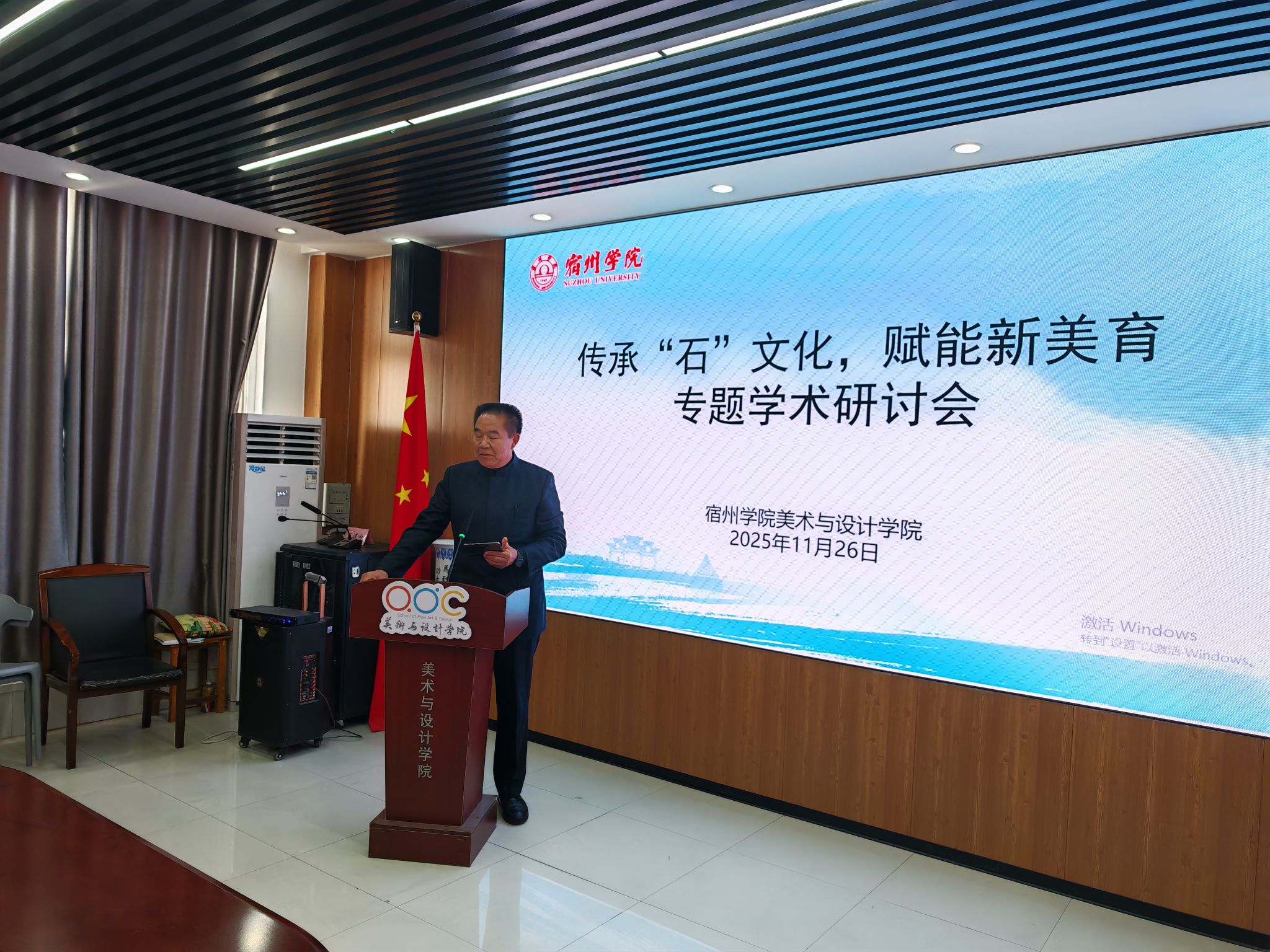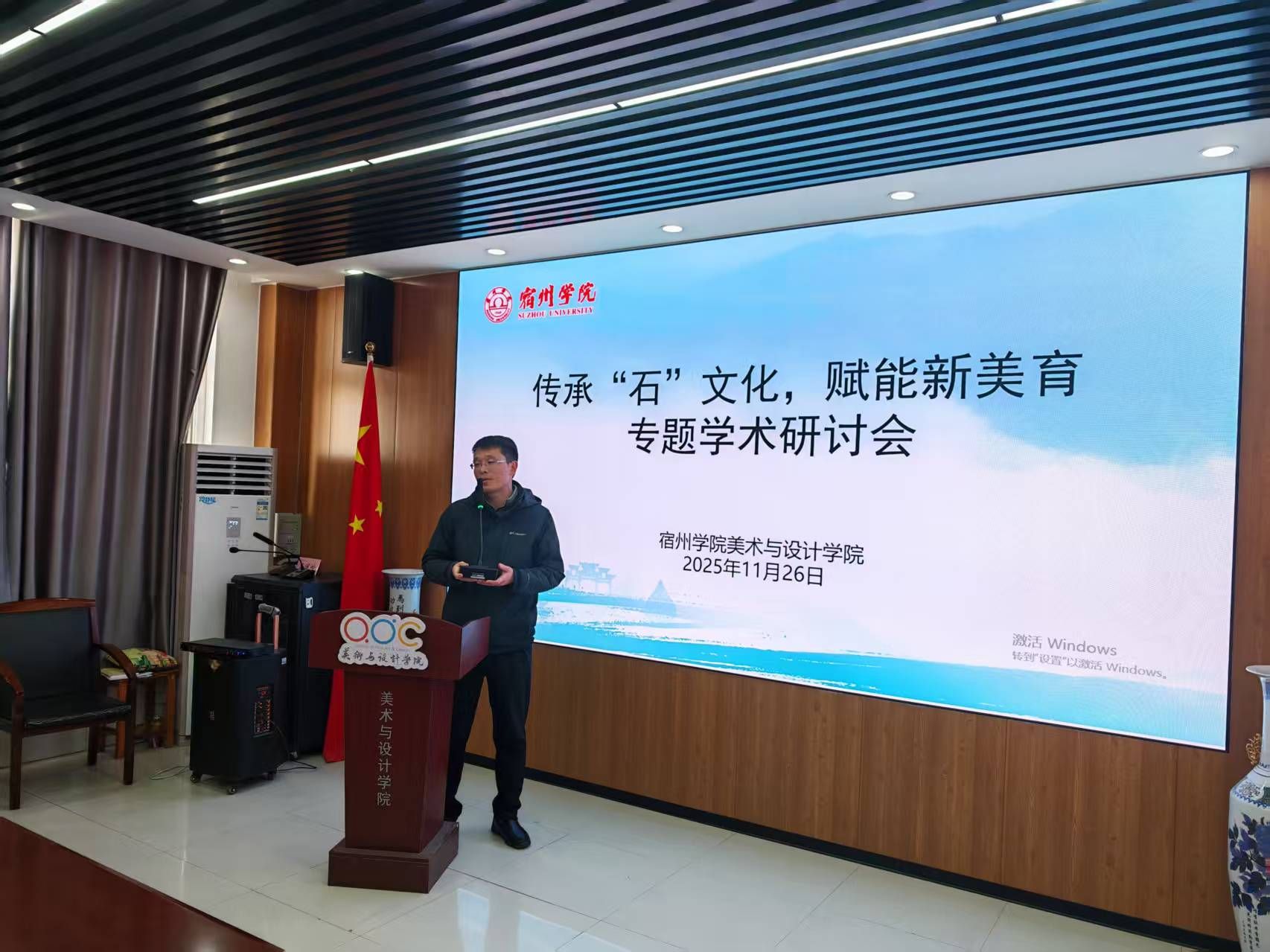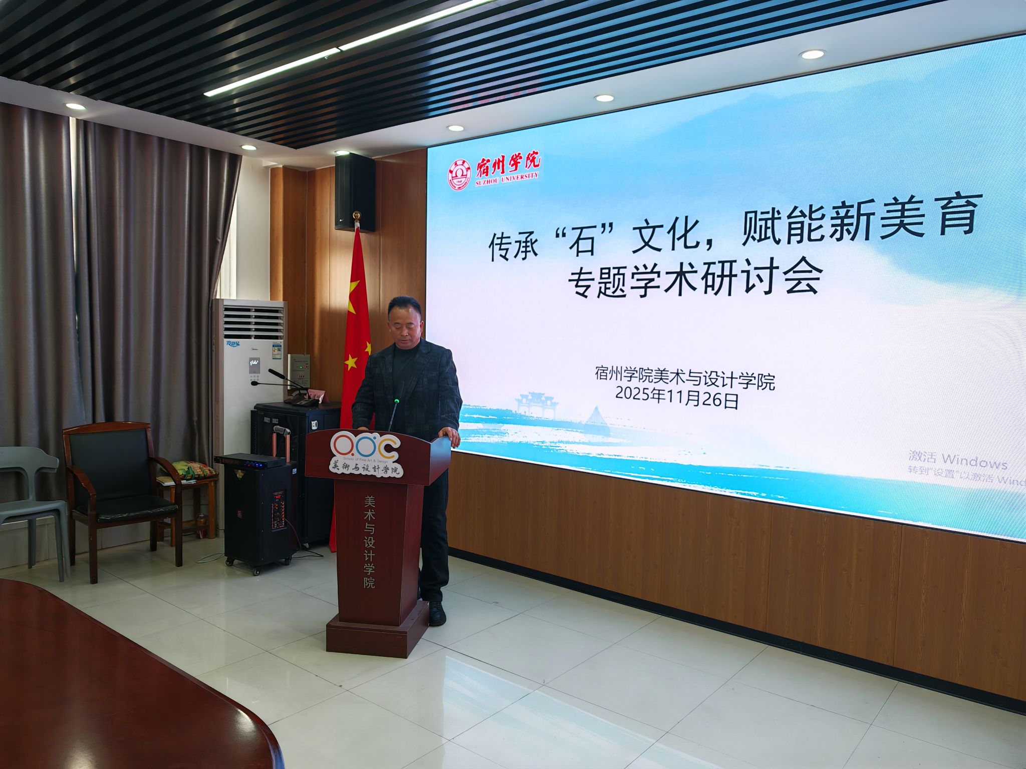 美育是立德树人、培根铸魂的重要事业,也是内容和形式需要与时俱进的时代课题。2025年11月26日,美术与设计学院主办的“传承‘石’文化 赋能新美育”学术研讨会在四楼会议室举行,来自业界的专家和灵璧石文化研究学者20余人参加了研讨会。研讨会由李娟教授主持,学院党委书记赵国付致辞,院长杨文艺作总结。