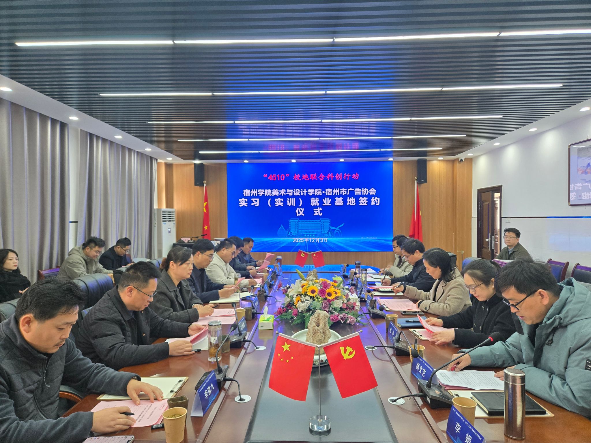 校就业与校地合作处处长赵丹,美术与设计学院党委书记赵国付,院党委副书记、院长杨文艺和美院班子成员与企业负责人亲切洽谈,详细了解招聘进展与岗位需求,就深化校企合作、共建实践基地、推进人才联合培养等事宜达成初步共识。