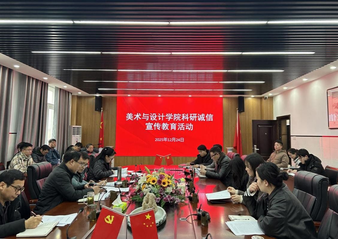 为营造风清气正的学术环境,美术与设计学院于2025年12月24日下午在学院四楼会议室召开科研诚信教育学习会。会议由副院长李娟主持,全体教师参加。
