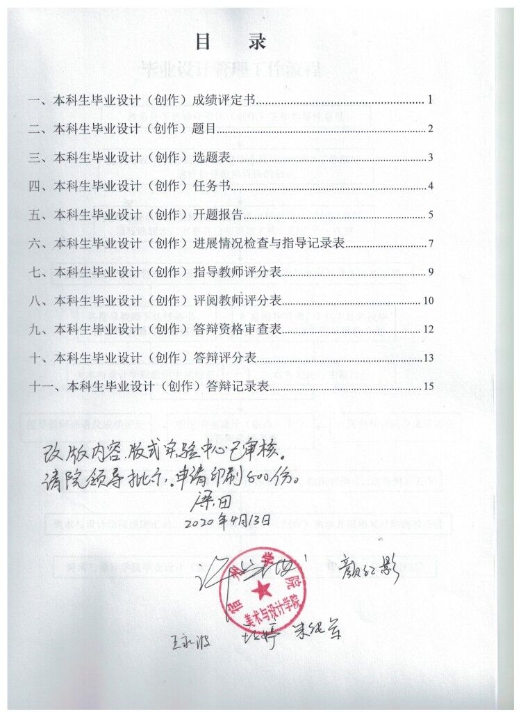 美术与设计学院根据专业特点及教学规律,现对《2020届毕业设计(创作)过程管理手册》进行改版,对新增涉及美术学和书法学两个专业的《2020届毕业论文(创作)过程管理手册》进行第一版制作。改版与第一版工作完成,并已向宿州学院教务处进行备案,现向学院师生发布。