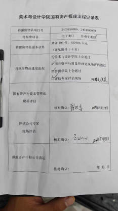 美术与设计学院将对待报废资产进行进一步梳理归类,确保报废清运工作可以顺利开展。